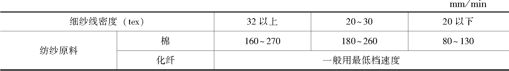最合适的盖板速度应该根据原棉条件,通过实际试验,检验棉网质量和盖板花含杂情况后决定。盖板线速度常用范围见表2-22。