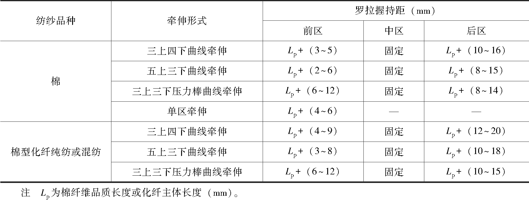 2.罗拉握持距配置范围 罗拉握持距配置范围见表2-39。