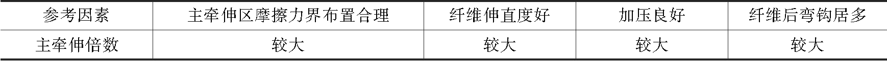 表2-33 后区牵伸倍数配置参考因素