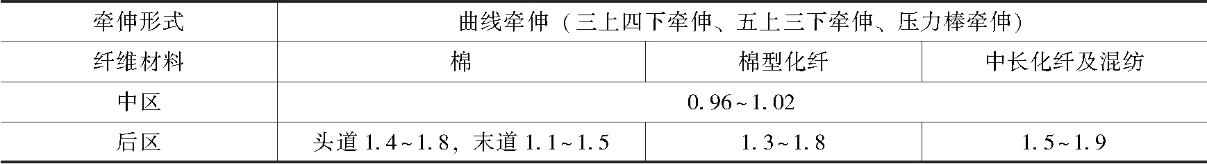 中后区牵伸倍数配置的一般范围见表2-34。