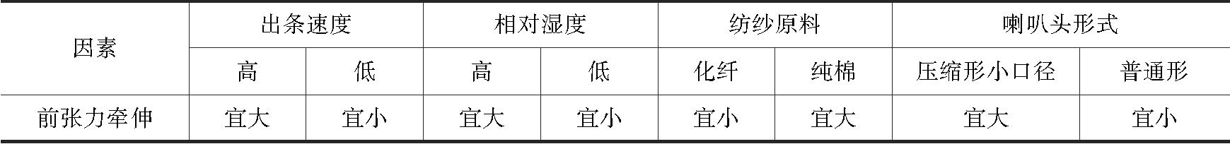 表2-35 前张力牵伸配置参考因素