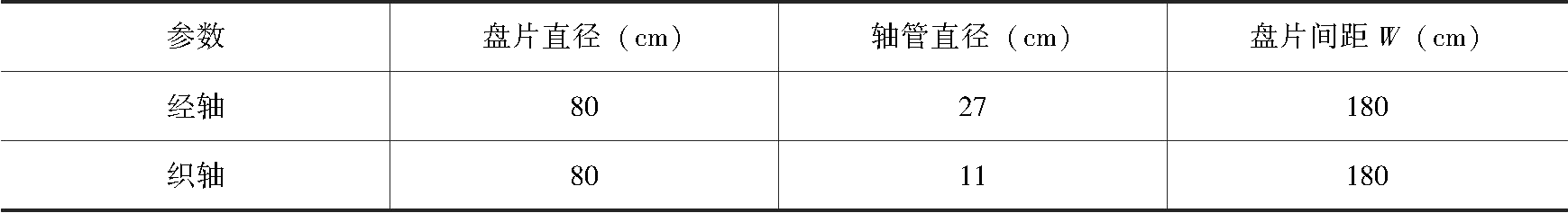 W——织轴盘片间的宽度,cm(盘片间距比上机筘幅大1~2cm);