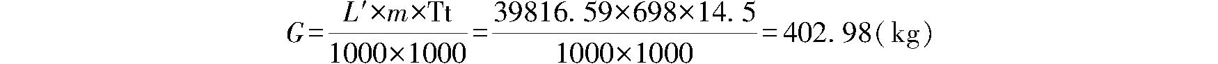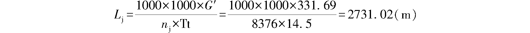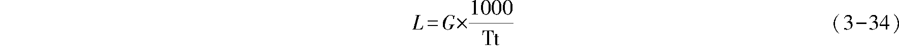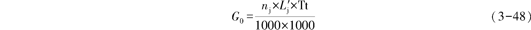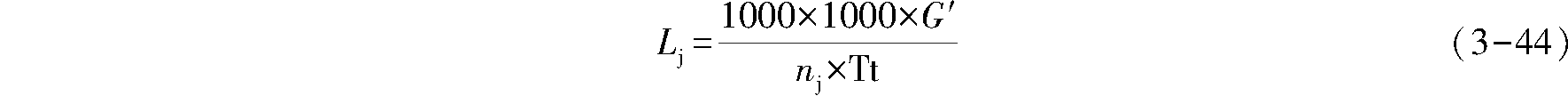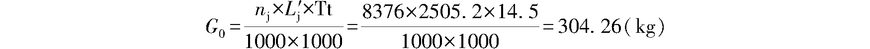 用总经根数nj及计划卷绕长度L′j来计算织轴实际无浆绕纱重量G0(kg)。