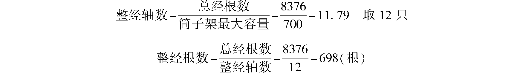 (2)整经根数。选用SGA221-180型整经机,筒子架容量为700,则:
