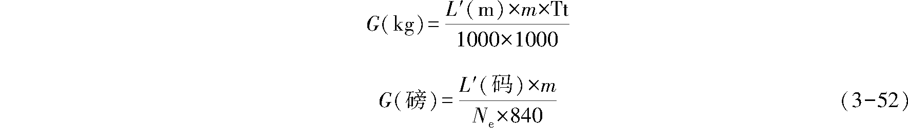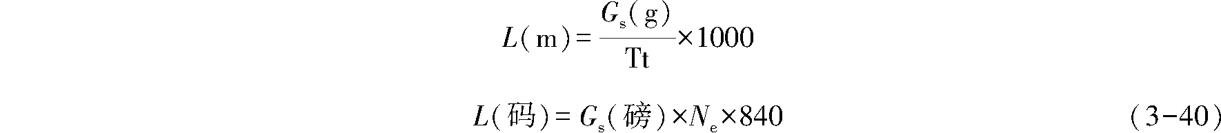 每种卷装上的绕纱长度及重量可用式(3-34)及式(3-35)计算。
