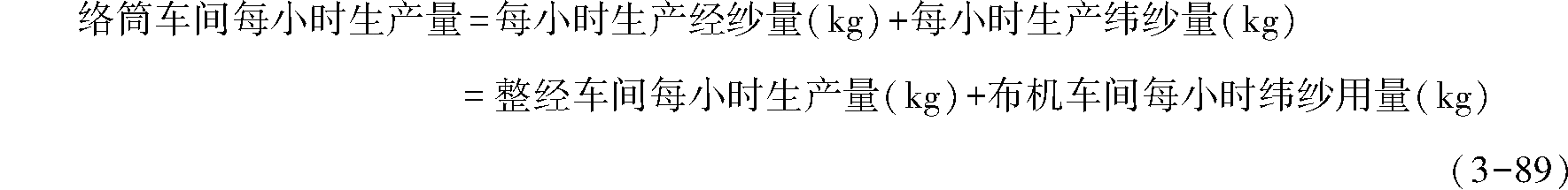 络筒车间每小时生产量=整经车间每小时生产量(kg)