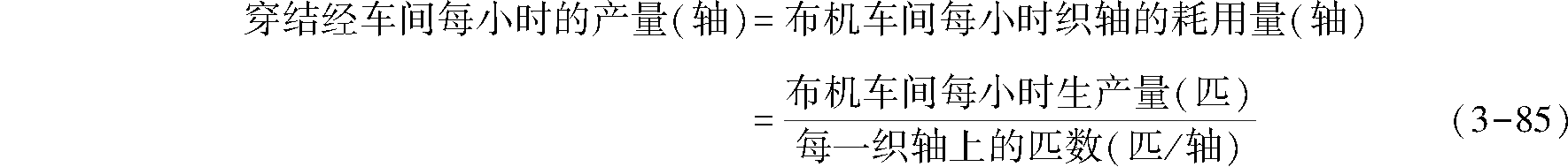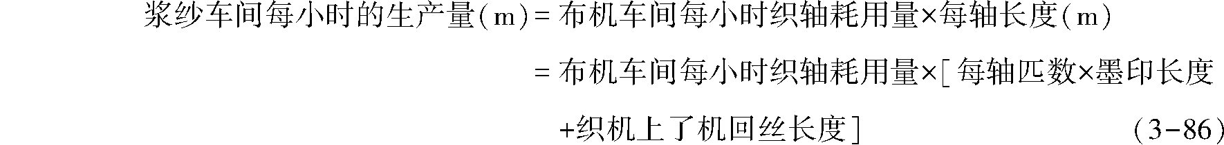 3.计算浆纱车间每小时的生产量 若浆纱车间以“轴”为计量单位,其产量等于穿结经车间每小时的产量,也等于布机车间每小时织轴的耗用量。