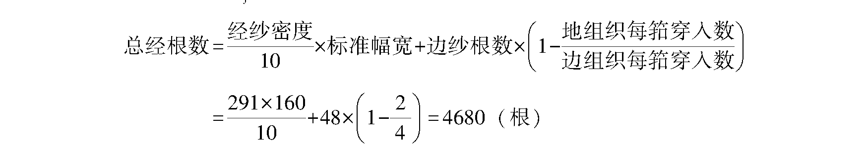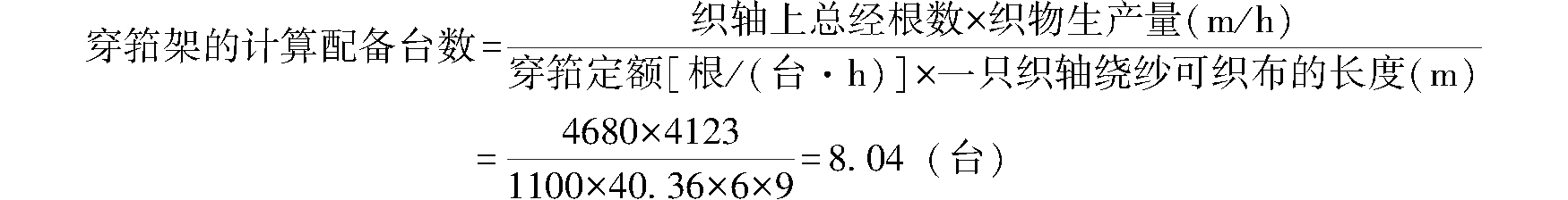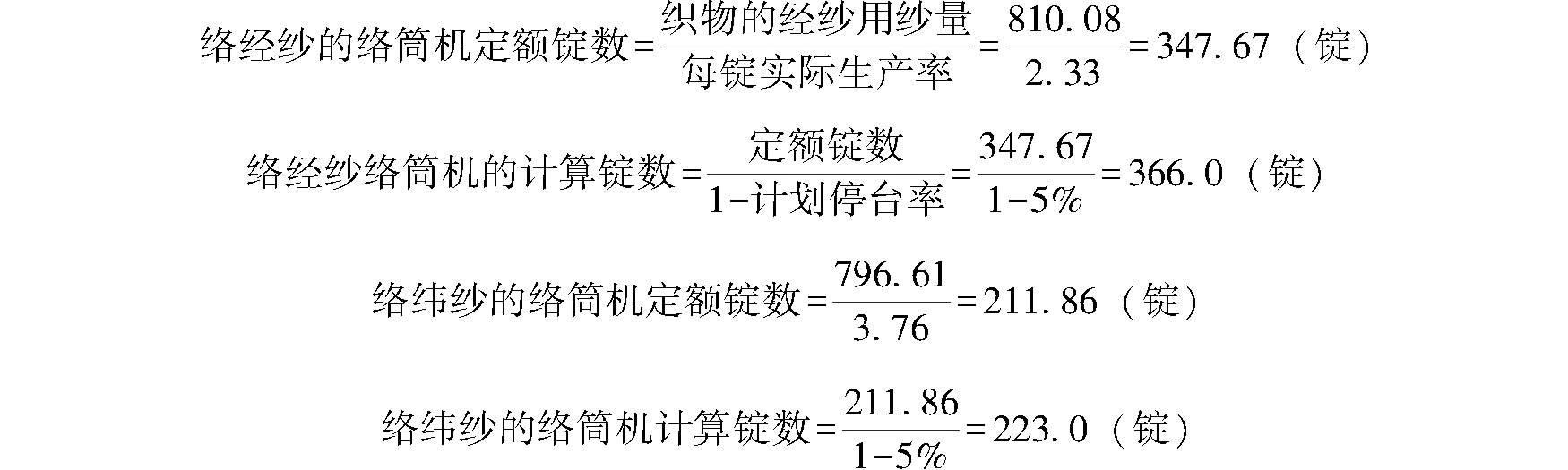 由于织物经纬纱线密度不同,不在同一台络筒机上络筒,若选择自动络筒机每台为60锭,则络经纱的络筒机配备4台,络纬纱的络筒机配备4台,共配备8台络筒机。