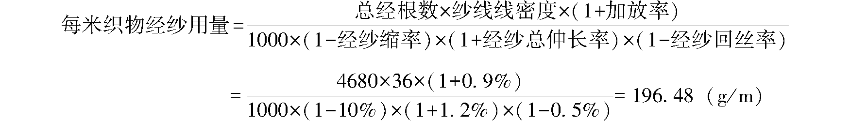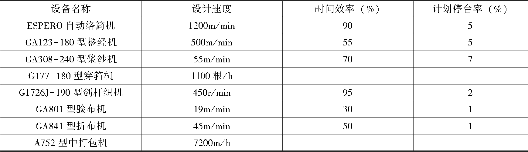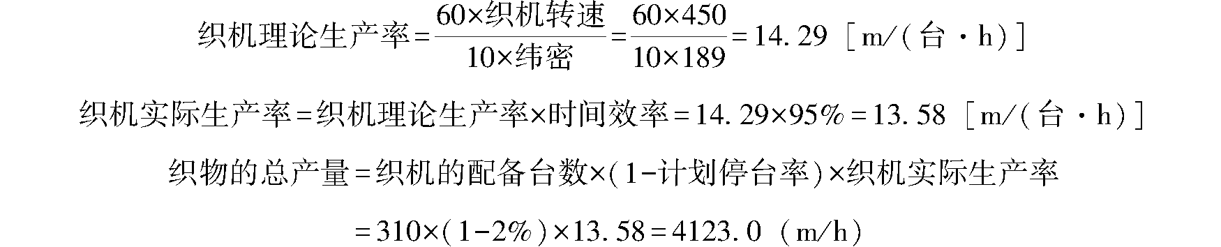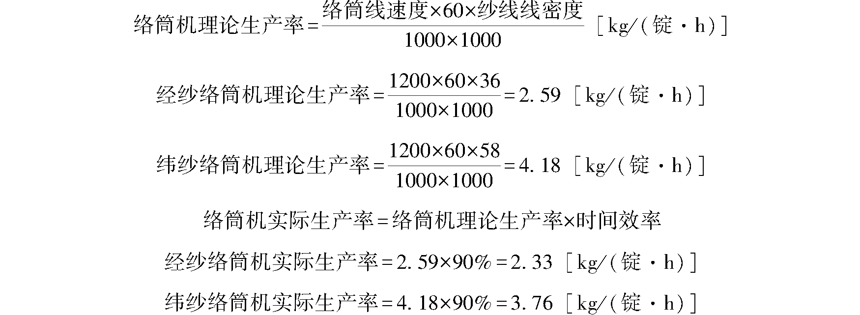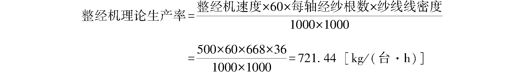 整经机实际生产率=整经机理论生产率×时间效率=721.44×55%=369.79[kg/(台·h)]