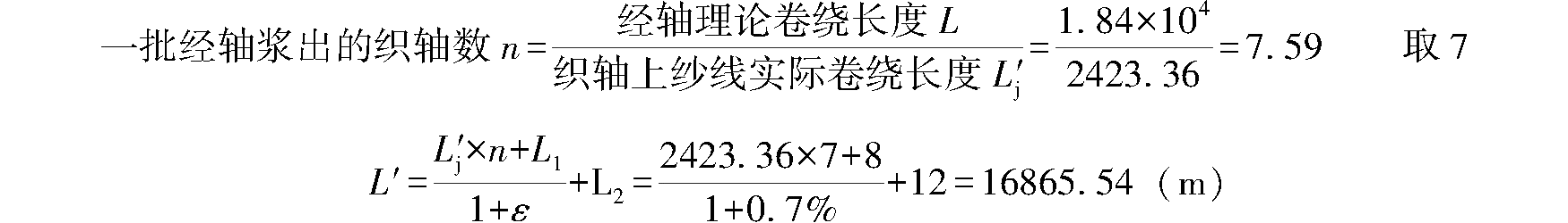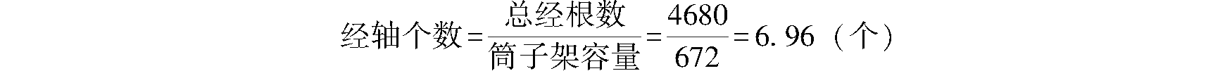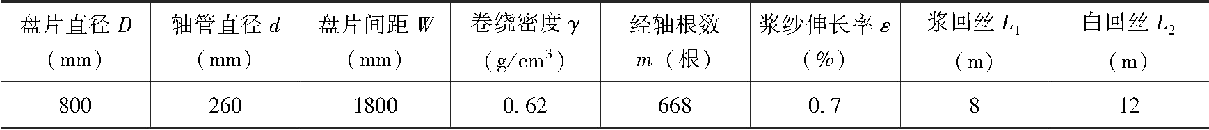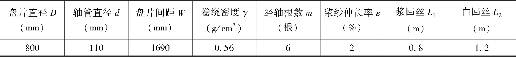 盘片间距W比筘幅大1~2cm,取167cm。织轴绕纱直径的最大值一般宜比织轴盘片直径至少小4cm,取76cm。织轴轴管直径应包括盘头布的厚度,取11.2cm。