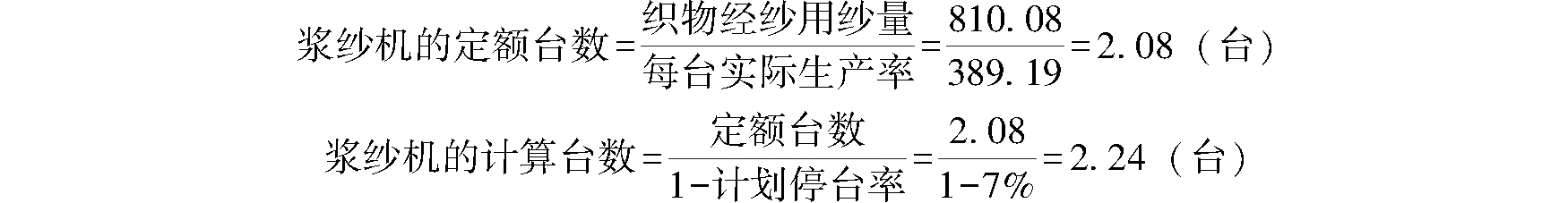 浆纱机实际生产率=浆纱机理论生产率×时间效率=559.98×70%=389.19[kg/(台·h)]