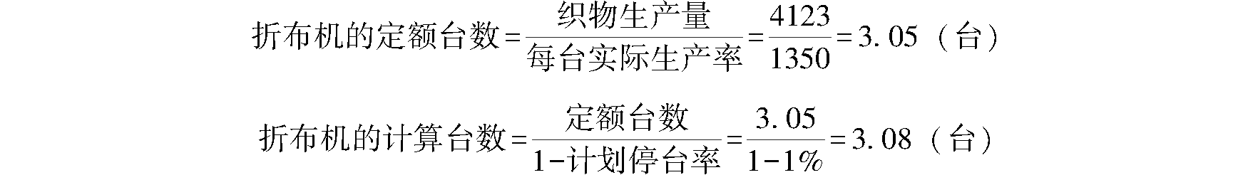 折布机实际生产率=折布机理论生产率×时间效率=2700×50%=1350[m/(台·h)]