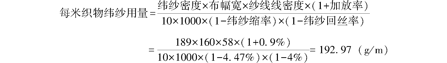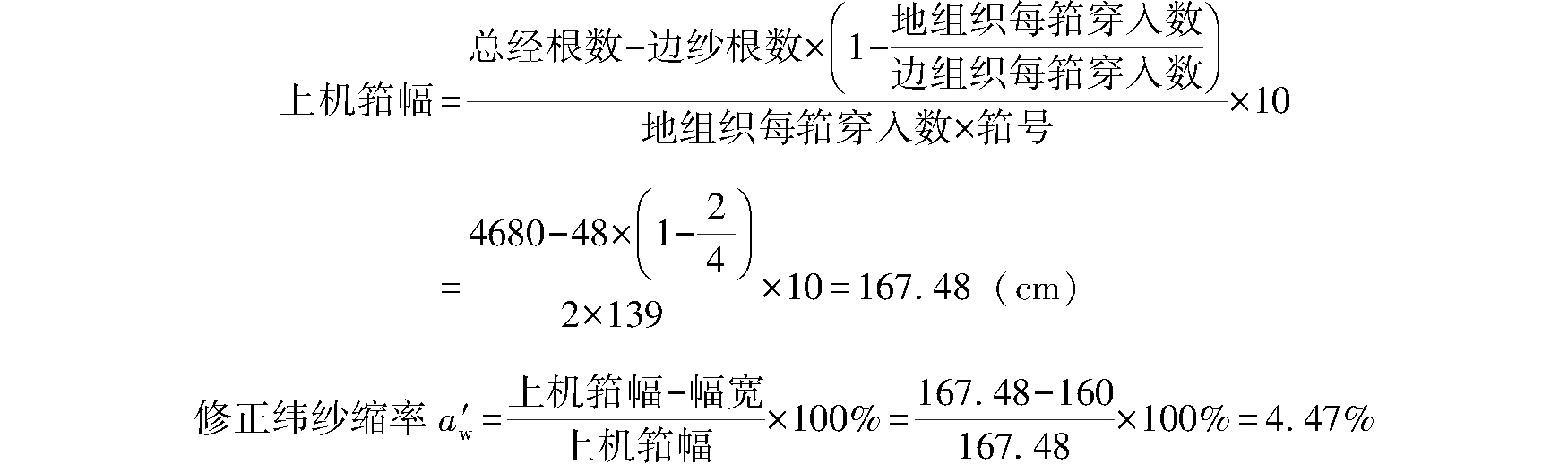 因为αw-aw=4.5%-4.47%=0.03%<0.2%,故所选纬纱缩率符合要求。