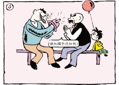 壮汉摘掉了爸爸的帽子。