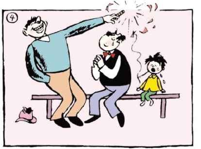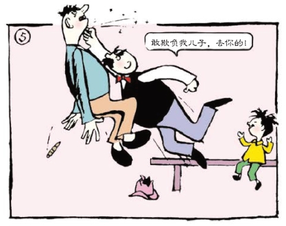 一个壮汉仗着自己强壮,欺负父子俩。