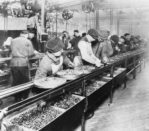 1913年,生产T型车的流水装配线