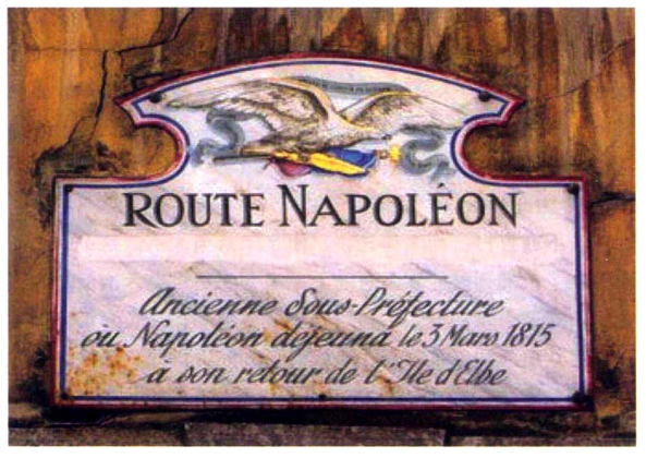 事实确实如此。虽然,在岛上他一人为王,帮助岛民们做些改革,倒也君民同乐。但是,幼溪锁不住蛟龙。他不断听说路易十八执政无能,老百姓曾经斗争所得的权利在渐渐地消失,而人们还没有忘记他,内心里重返法兰西,夺取皇权的火焰愈燃愈烈。次年2月底,趁英国督守外出之际,这位狮子座皇帝瞅准时机,毅然决定揭竿而起。他将自己的母亲和妹妹托付给当地百姓,带着一千二百多忠诚的人马快速行动,扬帆起航,向法国前进,一心重夺政权。经过三天三夜的海上航行,一行人马于3月1日抵达法国南部蔚蓝海岸的儒昂湾(Golfe-Juan)。由此开始一路北上,全程徒步三百二十四公里,仅一个星期的时间走过了格拉斯(Grasse)、圣瓦列提埃(St.Vallier Thiey)、艾斯卡尼奥(Escragnolles)、卡斯特兰(Castellane)、迪涅莱班(Digne-les-Bains)、马利热(Malijai)、阿尔诺堡(Château Arnoux)、锡斯特龙(Sisteron)、于佩(Upaix)、盖普(Gap)、香索山区(Champsaur)、可尔(Corps)、拉米尔(La Mure)、拉弗雷(Laffrey)、维济耶(Vizille)等城镇,最后抵达阿尔卑斯地区首府格勒诺布尔(Grenoble),取得压倒性的胜利,然后成功回到巴黎,夺回政权。于是,这条从南端儒昂湾开始,一直到格勒诺布尔的复辟夺权之路,被称为“拿破仑之路”(La Route Napoléon)。因拿破仑的昵称为“鹰”,这段路程也被称为“鹰之翱翔”(Vol d'aigle)。