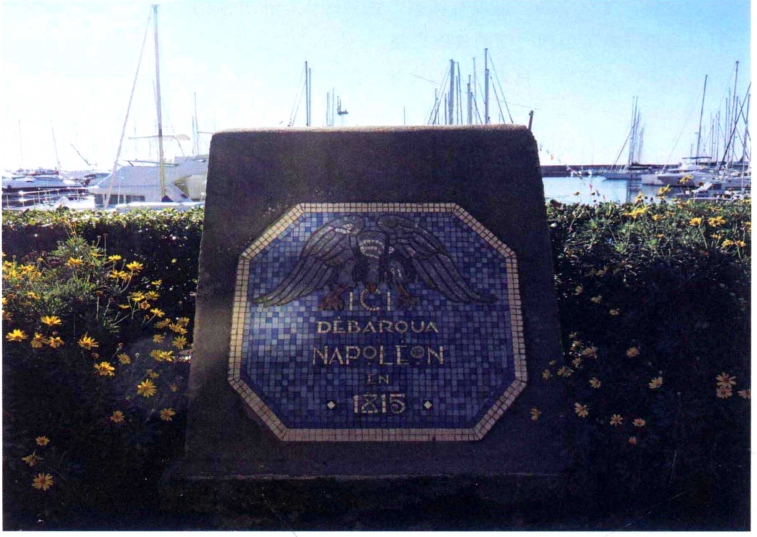 1815年2月26日,拿破仑率领着他坚定的支持者们从厄尔巴岛扬帆起航,快速行动,向法国前进。经过三天三夜的海上航行,一行人马于3月1日下午3点左右抵达法国南部蔚蓝海岸的儒昂湾。踏上陆地的那一刻,他不由深情地说道:“法国你好,勇者之地(Salut France,terre des braves)。”
