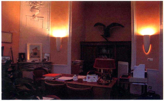 现在这座城堡的底楼是马利热市政府大厅,被列为历史保护遗产建筑,而楼上两层则都是私人住宅。拿破仑曾留宿一夜的房间,现今的主人并不希望被打扰,对外一律匿名。城堡门边的墙上有一块石牌匾标着“1815年3月4日到5日的夜晚,拿破仑在此过夜”,除此之外没有任何其他以拿破仑为标榜的缀物。我问起为何这里不像有些地方一样修个博物馆或展览厅之类的,市政府人员坦白地说这是由于经济原因。生活,也是非常现实的。一个英武皇帝的经过,一定给这个地方带来过传奇般的光辉与人文价值,然而当皇帝成为传说,法郎变成欧元,资金就是发言权,把这座历史建筑交给有能力的人各自承担,或许是保留它的可行方式,至少在这个经济危机四伏的时期。小镇市长得知我们一行将为中国读者介绍“拿破仑之路”,特地将她的办公室大门打开,让我们参观室内的装饰。精致的墙纸画与遍布天顶的石膏雕塑经常出现海船、美人鱼等与大海相关的形象,是典型的18世纪上普罗旺斯地区布尔乔亚上流阶层的风格。当我们细细参观完后,才发现女市长不知什么时候已悄悄离开,大门另一边的工作人员也都安安静静的,我们离去时他们对我们点头一笑而无多语。“这里的人都这么低调的吗?”我不禁好奇。“也许这算我们这个地方的特色吧。”陪伴我的女孩随即带我去到一个意想不到的地方。
