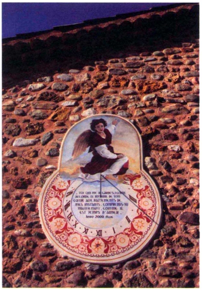 人类的情感无意识间会与色彩联系起来,看到“粉色”的时候不自觉地令人想到爱情。不知是巧合还是天意,在于佩镇一片桃粉的世界里,竟然隐藏着一条关于爱的真理。忏悔者小教堂(La Chapelle des Pénitents)是小镇的标志性建筑,建于17世纪,这里不仅是信仰者们与神灵祷告的地方,也是镇子的文化活动中心。而它最特别的地方在于前门上方的一具日晷。日晷,是人类历史上有记载的第一样用来分辨时间流逝的设置,它利用太阳投射下的阴影反映出它位置的移动,使人对时间有了具体的计算概念。它是我国古代非常重要的计时仪器,在《隋书》中有明确的记载。明代马中锡在《中山狼传》中提到“相持既久,日晷渐移”。在欧洲,这样的仪器在古埃及和罗马人时期就出现了,因此在法国南部古罗马人曾生活过的地带,留下了不少各种形态的日晷。到了20世纪的法国,人们对日晷的喜爱和崇拜日渐,鼓励创作者们推陈出新,制作出一大批形奇样异的日晷,使其由实用仪器渐渐转变成一类艺术品。有意思的是,每一个日晷上往往都刻有一句或哲理或幽默的话语,仿佛时间与众生的对话。一些比较有名的,有拉丁语Carpe diem,意为迎接当下的时光,简言之“活在当下”;还有“太阳为所有人升起”、“时间流过,请好好地过”等。而在这里,忏悔者小教堂门边的日晷,则被颇有灵犀地涂上橙粉色彩,与四周粉红的石屋相得益彰。日晷上画着一个天使,写有这样一句话:“正在看着我的你,请听好:将你的心跳调整到如我时间的律动。你是否明白,现在正是时候去爱(Toi qui me regardes, éoute:accorde le rythme de ton coeur aux battements de mes instants.Comprends-tu maintenant comme il est temps d'aimer.)。”据说,镇子附近知道这个日晷秘语的年轻人们,在人生最重要的时刻,会牵上爱人的手来到这个教堂门口。在这个粉红色梦幻般的境地里,在时间庄严的见证下,对心上人表白内心,提出相伴一生的承诺。