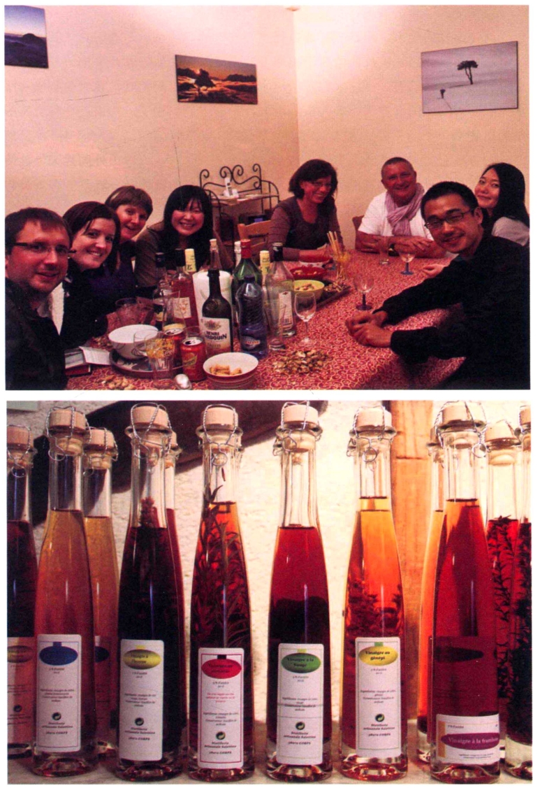 “二战”之后,香索山区曾出现一次大规模的出山潮,差不多一半的山里人选择走出去看“新世界”。据统计,从2000年开始逐渐出现回巢现象,特别是2005年以来,大批所谓的“新山民”从城市移居到山间。有些时候,我们向往外面的远方,去寻找那样自己也说不清、道不明的东西,走了一大圈后,才发现它也许就在出发的地方,那是一种让自己“心安”的归属感。返璞归真,其实只是一个选择而已。当晚,我们留宿于帕斯卡的家庭旅馆,他的女儿拿出曾经去中国旅游的照片给我们看,一位来旅游的日本女孩子跟我打起招呼,我对面则坐着刚从美国回来的法国女教师。看人头济济的,帕斯卡高兴极了,摆出近十种自家酿制的植物酒,不断招呼大家来品尝。兴致高了,还对我们吆喝起“干杯”,俨然一位来自东北的大哥,让人尤感亲切。地球就是一个村,山里山外同片天,性情中人把酒欢。我想起莎拉说的,山里人端上一杯自制的植物酒,就是给客人最好的礼物,不禁仰头一饮而尽。
