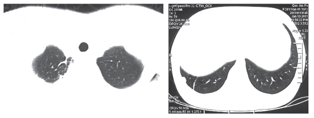 学习阅读影像资料,需要下点功夫,但有些部位的影像资料也不是很难懂。我们只需学习了解本病中最重要的部位,也是最常做检查部位的影像阅片就可以了。阅片先要大体上知道成像原理。以肺部CT为例,它是对人体肺部进行断层扫描的结果,就像把土豆切成片状一样,相当于把整个肺部一层层地横切开来让我们看。所以,我们看到的肺部CT片子,最上边是肺尖和气管,然后进一步看到支气管、肺门和肺的大部分组织,到了最后,就只剩下两肺下端,就像月牙形了(见图2)。