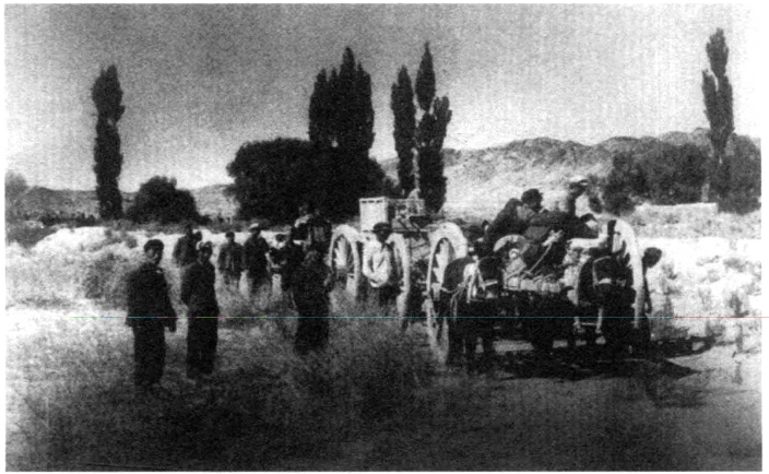 1956年的4月,从安西到榆林窟的戈壁滩上,移动着一支由几辆牛车组成的行进队列。车上装载着笨重的画具、行李包裹以及各种生活用品。砾沙路上,牛车左一下右一下的颠簸着,“吱溜吱溜”的车轴响声一次又一次单调地打破料峭春风中的沉寂。
