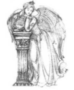 在夜神醒来之前,蒂勒脱满怀深情地看着夜神那张熟悉的脸。这张面孔深情冷漠令人敬畏,如同月亮一样呈现银白色。在长长的黑色轻纱下,隐约可见夜神的躯体,体态如同希腊塑像一样美丽。她长了一对翅膀,没有胳膊。熟睡的时候巨大的翅膀收拢在两侧,使她看上去十分威严。虽然蒂勒脱对她的这位好朋友一往情深,可是她没有太多的时间去细细地打量。现在可是最关键的时刻,时间紧迫。她筋疲力尽地跌倒在宝座前的台阶上,浑身上下疼痛难忍,痛苦地喵喵直叫。