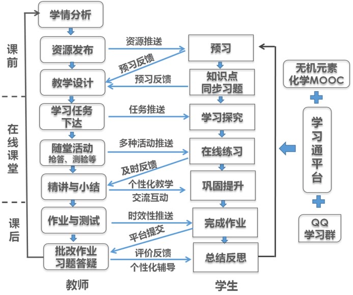 “无机化学II”课程主要讲授元素化学,教学内容多且杂,是无机化学教学的难点和重点,学生在学习时,常感到看懂不难、掌握不易。为使学生能迎难而上,积极参与到在线学习中来,我们设计了包括学情分析与课程资源发布、课前预习、在线课堂互动、课后复习和个性化辅导等教学环节在内的在线教学方案(图1)。