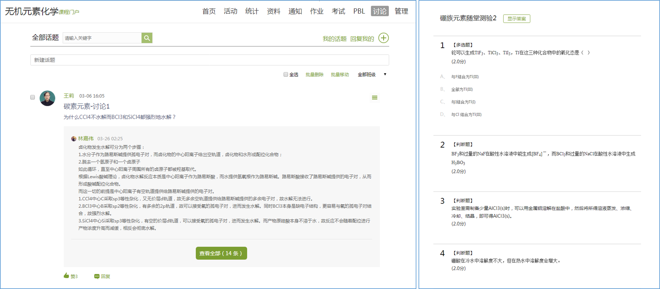 图2 无机化学II在线教学问题讨论和知识点习题范例