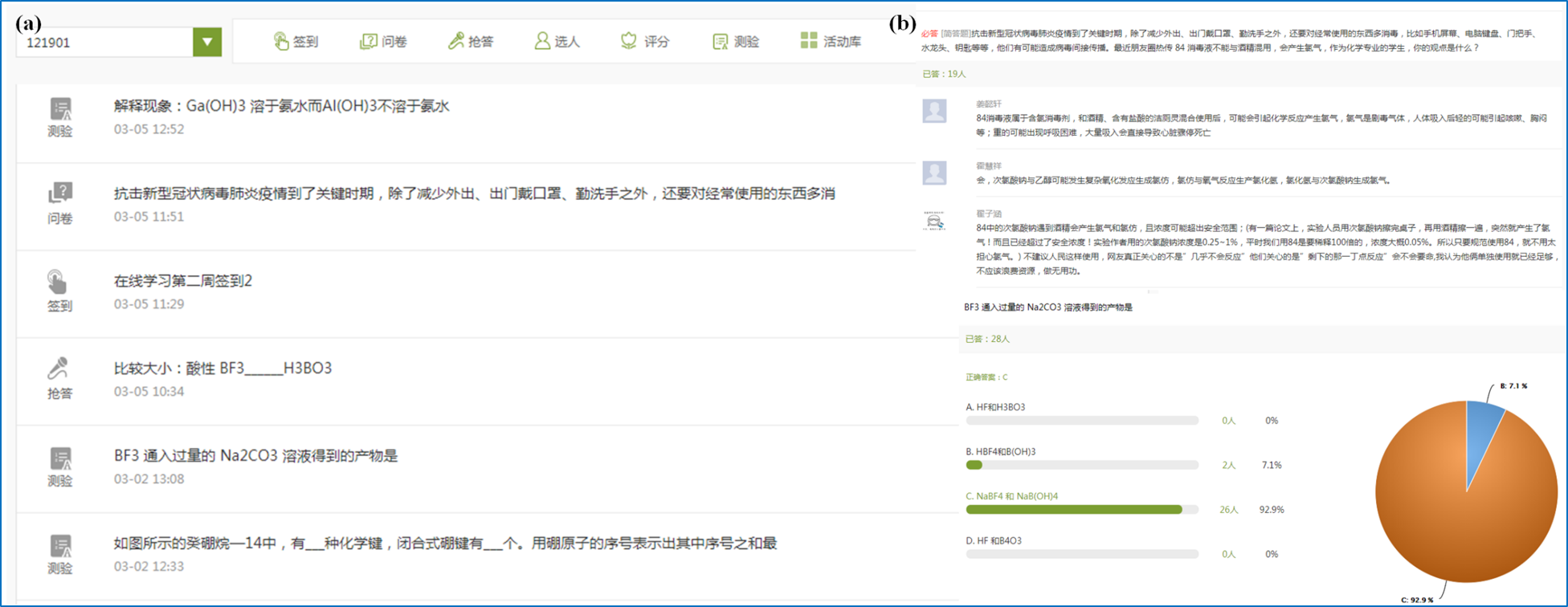 (2)上课时,先发布知识点学习任务(约25 min),在学生完成规定知识点的学习后,发布“抢答”、“测验”等实时课堂活动,以提高学生的课堂注意力,充分调动其积极性。