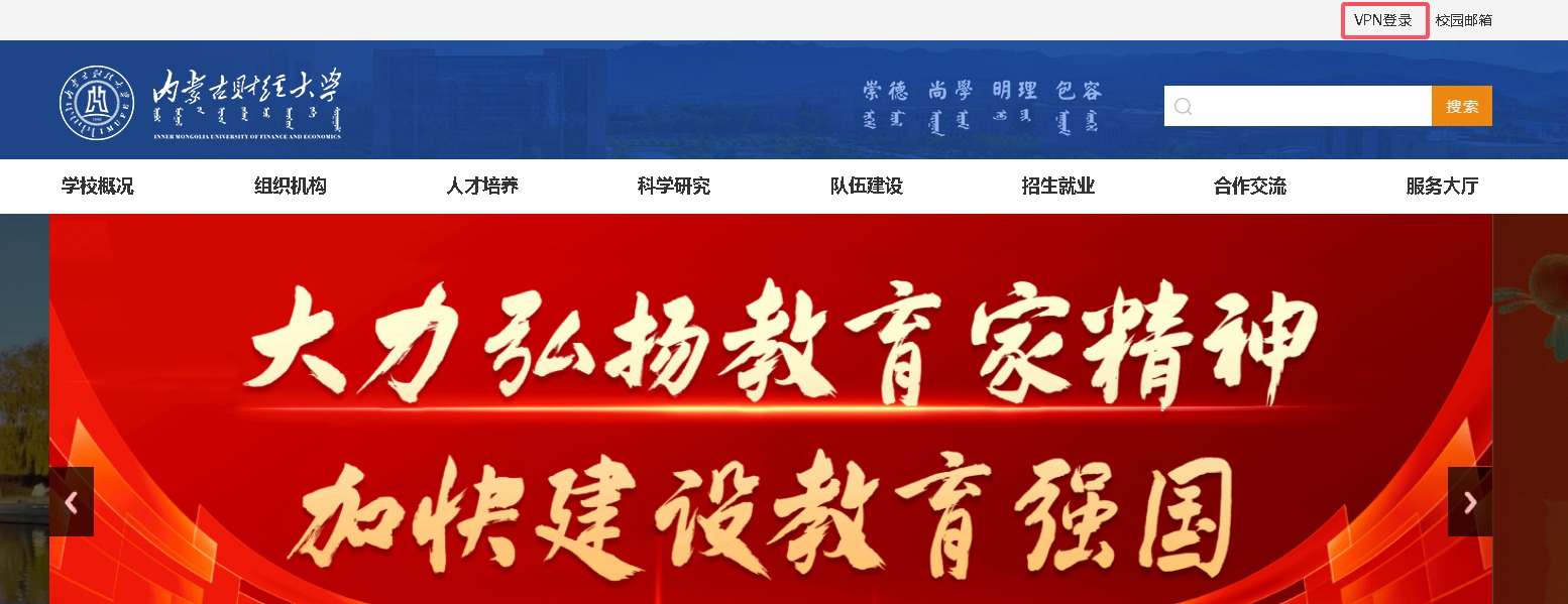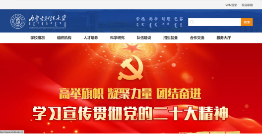 1、进入学校主页(https://www.imufe.edu.cn/)