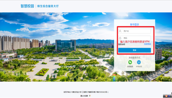 2、点击“VPN登录”(说明:在利用VPN时,推荐使用360浏览器极速模式或chrome浏览器)