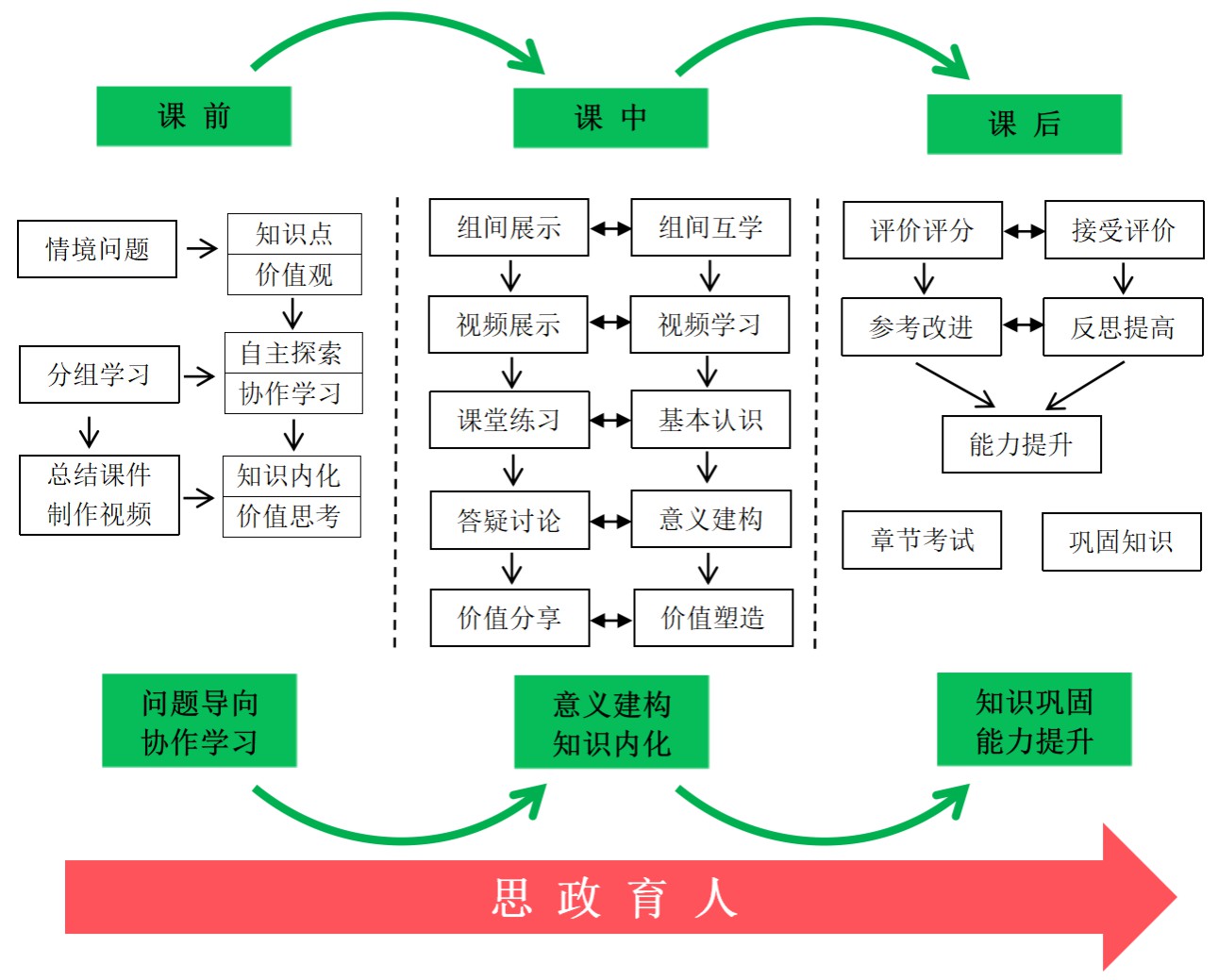 首先创设学习问题,以学科问题为基础、学生问题为起点、蕴含思政元素的情境问题为引导,让问题发挥激活旧知论证新知、最后运用新知融会贯通的作用;然后学生以问题为导向展开自主学习及分组协作学习,并制作授课课件、授课视频,在准备展示的输出性学习过程中学生对知识本质有了深刻的认知;最后师生共建在线课程,保证了课堂教学运行。