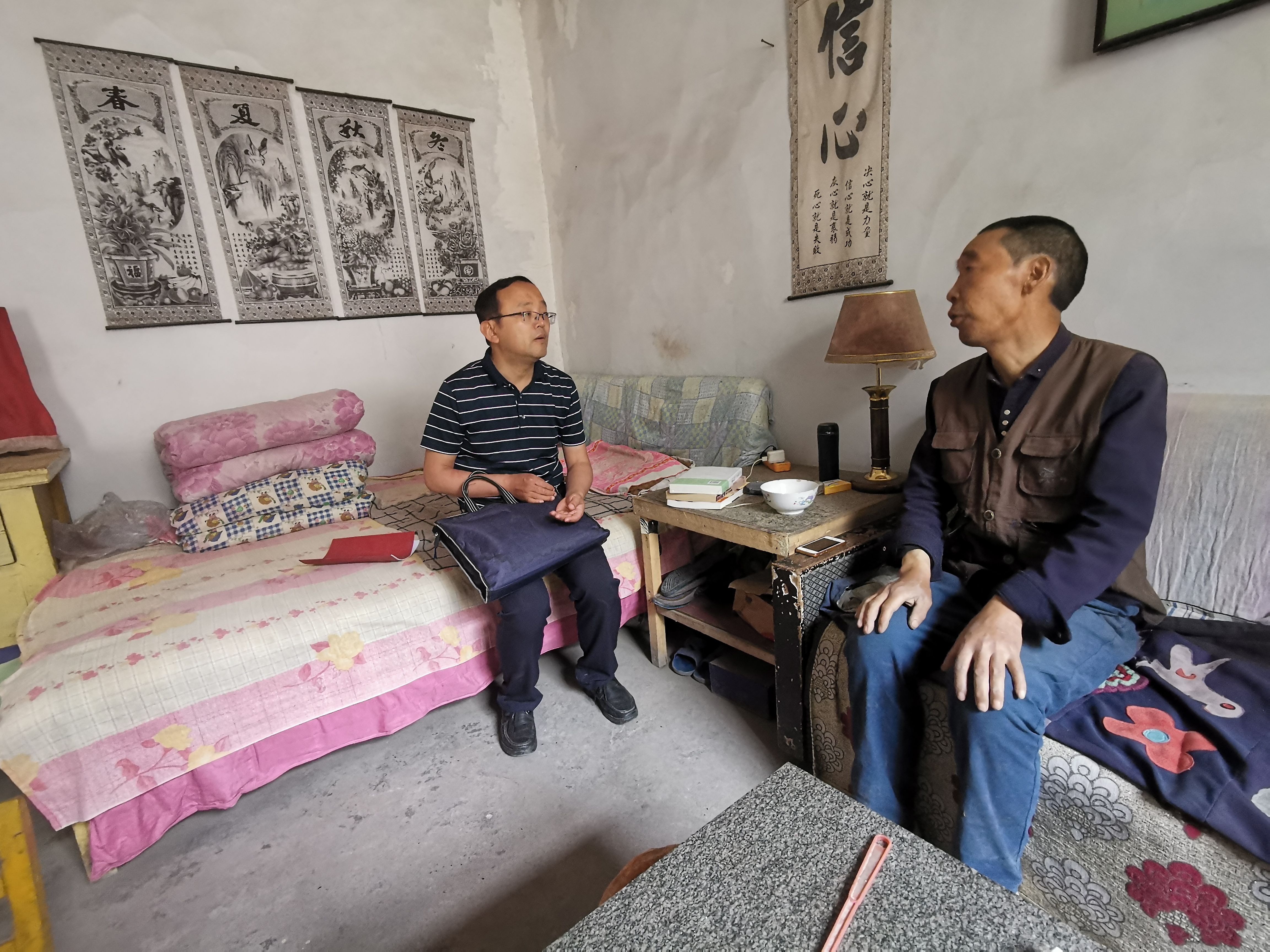 在桥上村第一书记白少栋等人的陪同下,结对帮扶入户走访工作分头进行。首先,重点对照实际情况认真做好建档立卡信息核查工作,确保线上线下信息一致,更好地展开帮扶工作。随后,王建军馆长、王开学副馆长带领每个帮扶责任人挨家挨户对贫困户进行走访慰问,与贫困户进行了亲切交谈,询问了他们的生活和健康状况,了解享受扶贫政策的情况和目前面临的实际困难,并送去了组织的关心和温暖,鼓励贫困户坚定信心,走上脱贫致富之路,全面决胜小康社会。