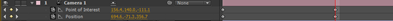 10.使用摄像机旋转及移动工具,对画面进行调整,展开Camera1(摄像机1)的Transform(属性),在0秒对Point of Interest(目标点)及Position(位置)设置关键帧。