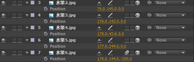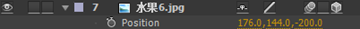 8.选中“水果6”素材,按P键打开Position(位置),设置为(176,144,-200)