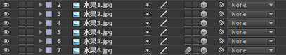 6. 使用Pan Behind Tool(定位点移动工具)按钮,调整“水果2~5”素材的中心位置。