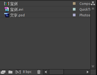 2. 选中“宝剑.avi”拖拽到新建合成按钮上,创建合成。
