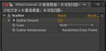 9.将时间线移至0秒,在EffectControls(特效控制)面板中,展开Scatter (分散)卷展栏,设置Scatter Amount(分散数量)的值为0,并为其设置关键帧。