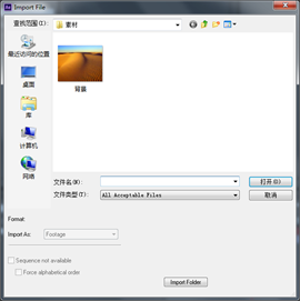 1. 双击Proect(项目)窗口,找到素材所在位置,选中所需的素材“背景.jpg”单击打开。