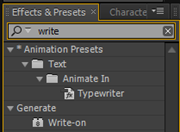 5.在Effects&Presets特效面板中展开Generate(产生)特效组,将Write On(书写)特效拖拽到“龙.tga”层。