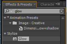 14.为“描边”层添加Glow(辉光)特效。在Effects&Presets(效果和预置)中展开Stylize(风格化)特效组,将Glow(辉光)特效拖拽到“描边”层。