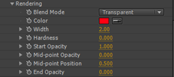 13.展开Rendering(渲染)选项组,从Blend Mode(混合模式)下拉列表中选择Transparent(透明)选项,设置Corlor(颜色)为红色(R:176,G:0,B:0)