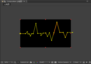 9.在时间线面板中,选择“描边”层,在工具栏中选择钢笔工具,在描边层上绘制一个心电图路径