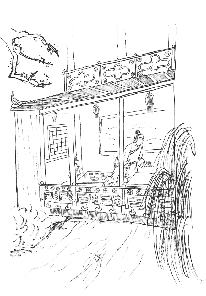 恰巧靠近屏风的拐角处有一个茶位,嫣儿和王阳明坐下来。王阳明传了茶,店小二嗓音洪亮地高声唱着奔过来:“屏风后面,拐弯儿边儿上,又鲜又嫩的碧螺春茶来喽!”
