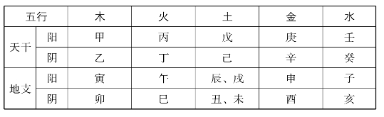 表七 干支与阴阳五行对照表