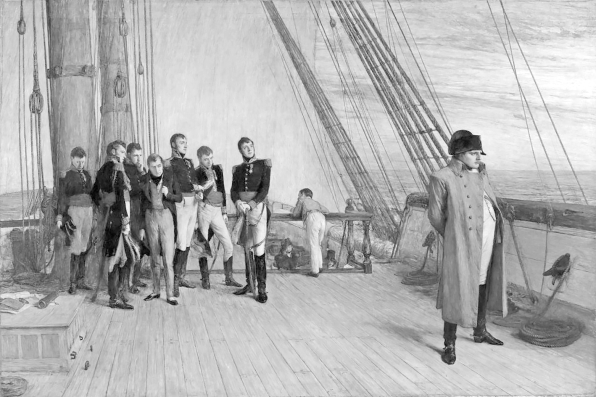 拿破仑·波拿巴思绪万千。他曾经想过前往英国,享受人们热烈的欢呼。1814年,在枫丹白露宫,卡斯尔雷子爵罗伯特·斯图尔特曾通过维琴察公爵阿尔芒-奥古斯丁-路易·德·科兰古传递消息,询问道:“请问拿破仑·波拿巴为何要去厄尔巴岛?为什么不到英国来?到伦敦来,人们会热烈欢迎他。英国政府一定会厚待他,难道不比到荒岩野岛或地中海的无名之地强?当然,议谈时不能明讲,否则这个问题会一直拖延下去,惹出是非。但请拿破仑·波拿巴无条件投降,赋予与他苦战十年的盟方一点尊敬。在英国,他会受到最高规格的接待。到时候,他会知道英国的重要性。英国绅士们都重视荣誉感,并且目前在混乱中签订的条约,根本没有任何效力。”