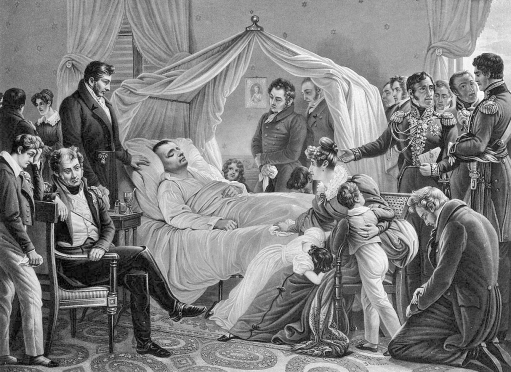 1821年5月前两天,拿破仑·波拿巴已经神志不清,以为自己在战场上,不时呓语道:“路易·查尔斯·安托万·德赛·德·维古!安德烈·马塞纳!向着胜利前进!向前冲啊!向前!将敌人都消灭!”