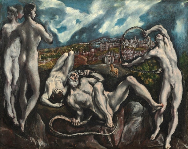 两条巨蟒困住了拉奥孔父子三人,埃尔·格列柯(El Greco,1541——1614)绘于1604——1614年间,现藏于美国国家艺术馆